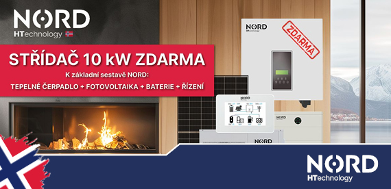 Získejte střídač 10 kW zdarma Získejte střídač 10 kW zdarma k základní sestavě NORD (tepelné čerpadlo + FV + baterie + HEMS). Chytrý energetický systém NORD zvyšuje vlastní spotřebu, snižuje náklady a zajišťuje komfort bez kompromisů.
